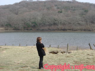 | ■石像が健気に池を見続ける姿にインスパイアされて、ここは私も趣深く八丁池を眺めてみた。 タイマー機能を使い、誰もいないのを良い事に、滅多に写さない自分自身を撮影し公開。 誰もいないからこそ出来る、照れ屋な私のささやかな遊びである。 |